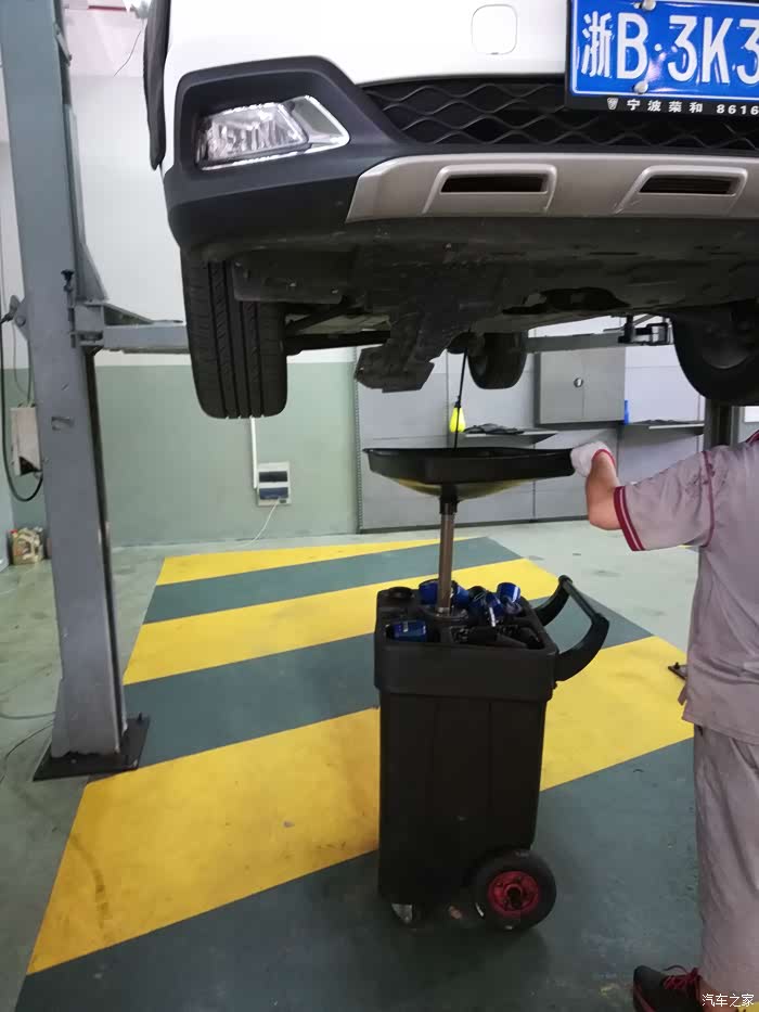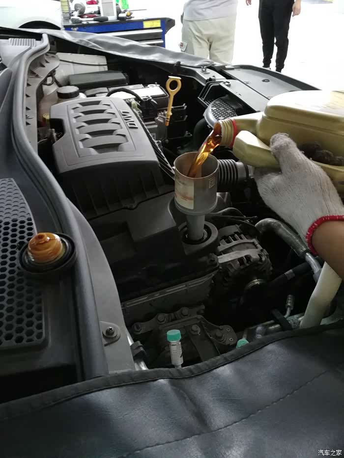 机油放完后,新的机油已经到位.嘉实多机油 上汽合作专享.