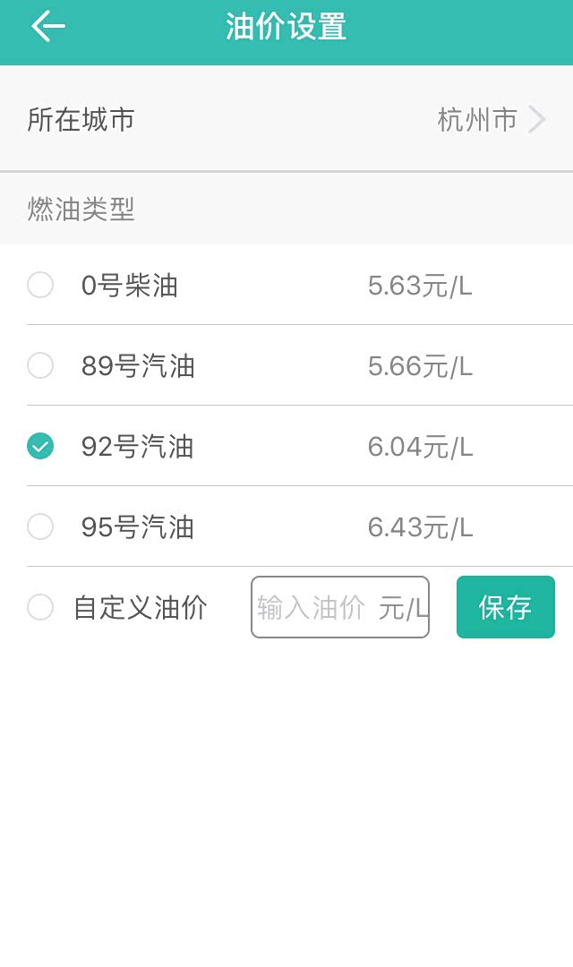 在APP首页下滑会出现个人中心,可以设置当前城市,以及你所加的燃油标号,就能自动更新油价。