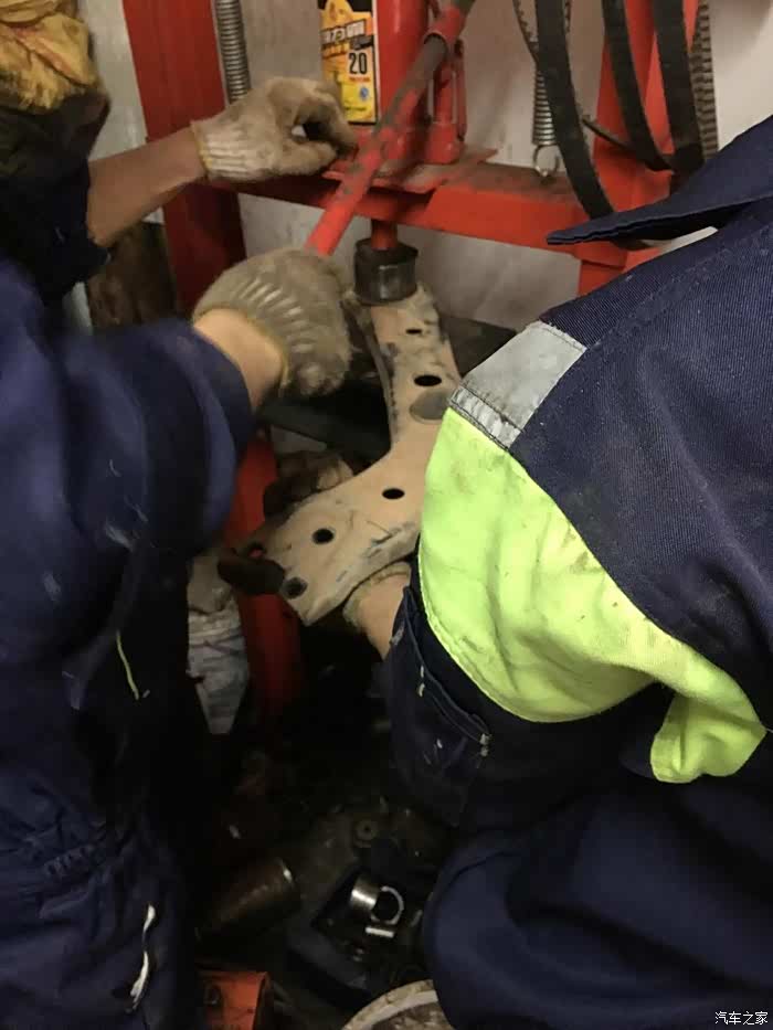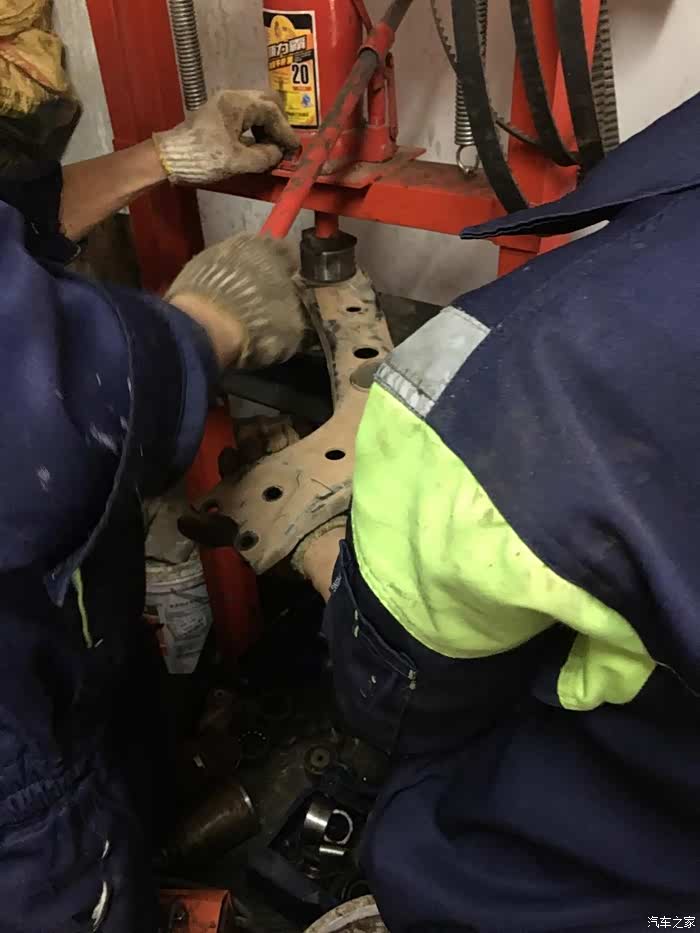 小胶套没有一点问题,师傅说没有必要换,而且原厂的小胶套是用冲床压进去的,非常的牢固,在这里要换的话只能用铁锤打进去,而且管不了多久,没有原厂的耐用,所以就没有换小胶套,压完两个大胶套以后收工