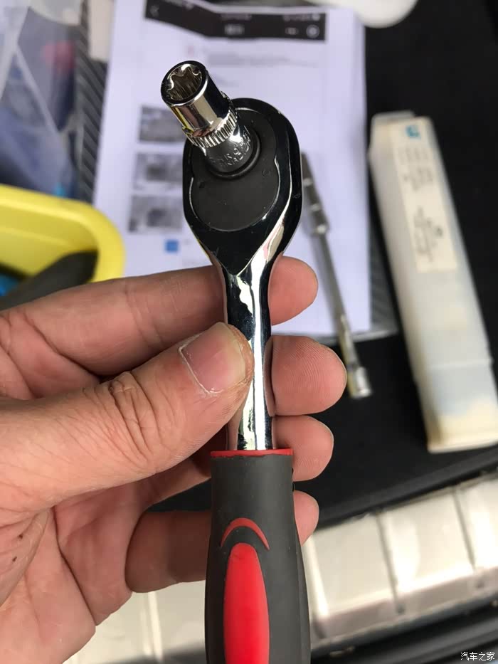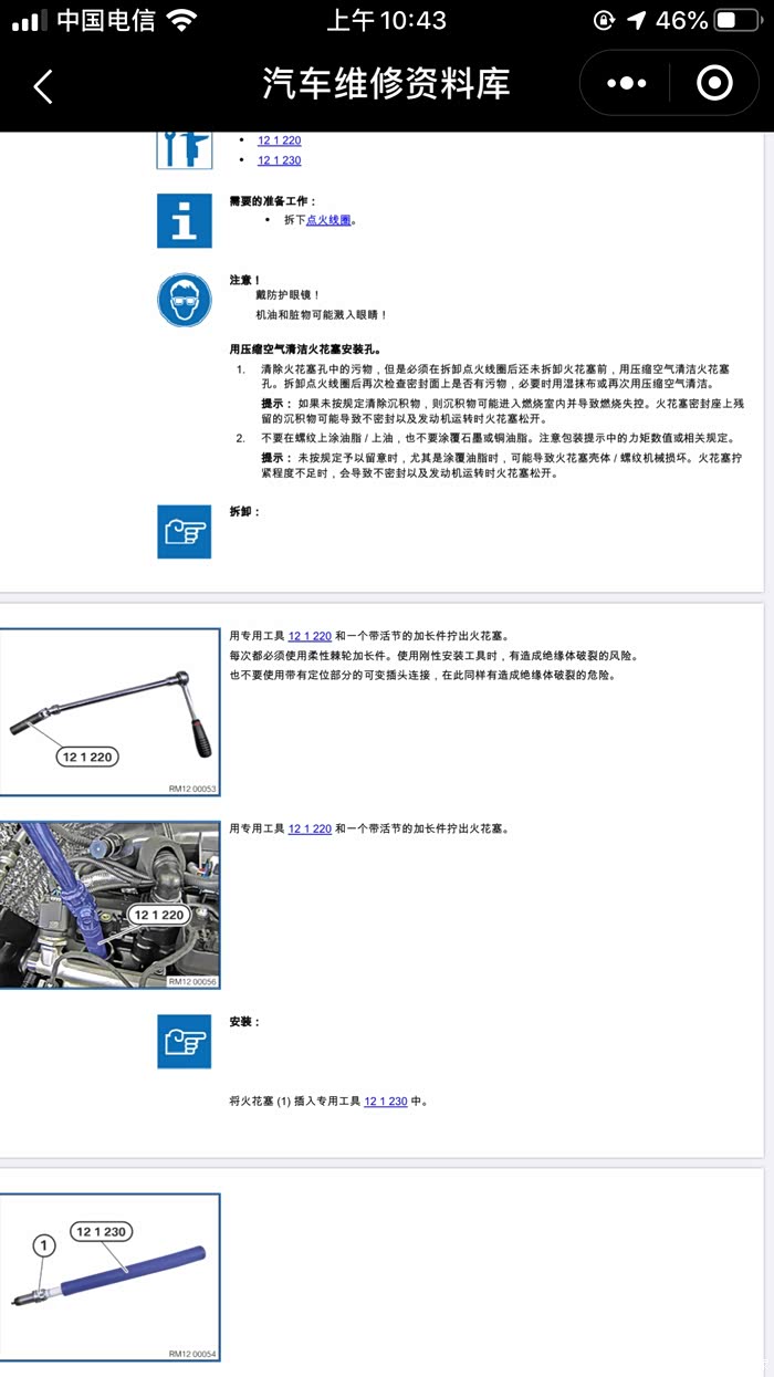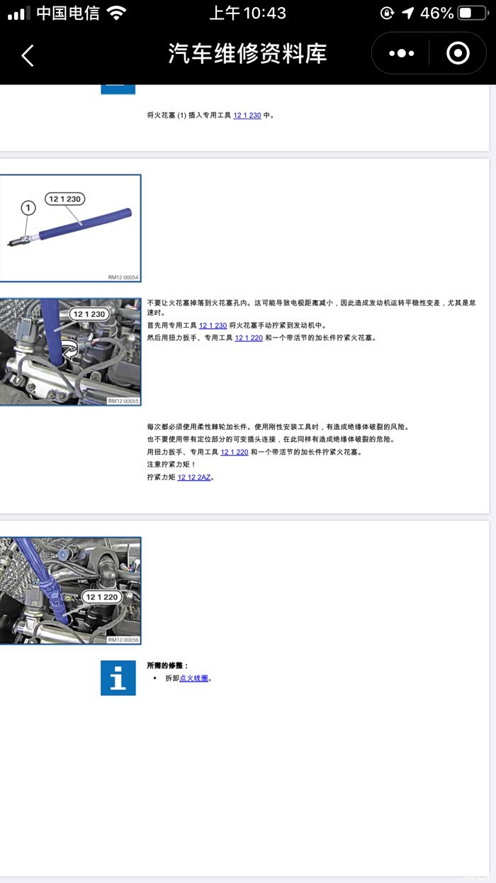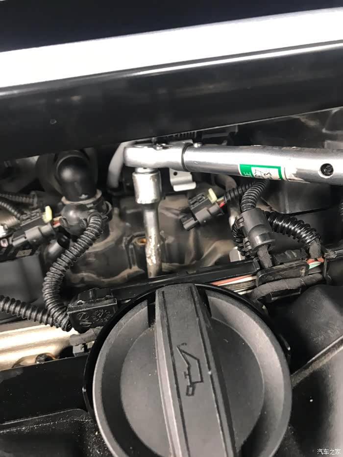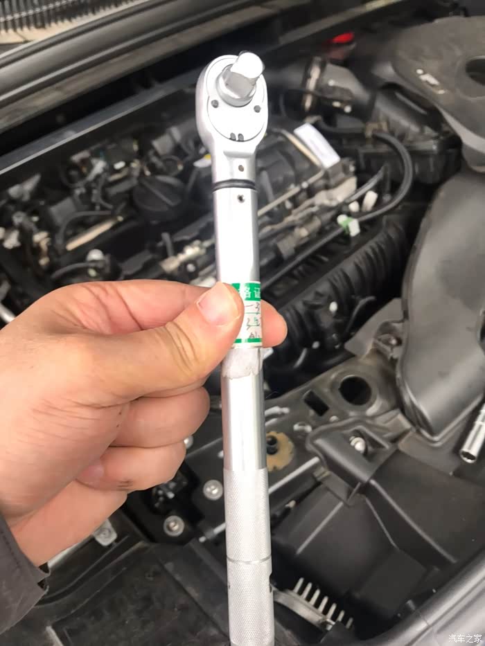 同时,为保证火花塞扭矩,借用了一把扭矩扳手,宝马官方维修手册对该型号火花塞扭矩22±3Nm。