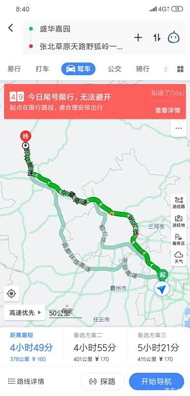 自驾路线要通过北京,走六环不用办理进京证。在北京界检查站和八达岭高速会有短暂堵车情况。心态放平慢慢通过即可,八达岭高速路窄多弯限速80注意安全。