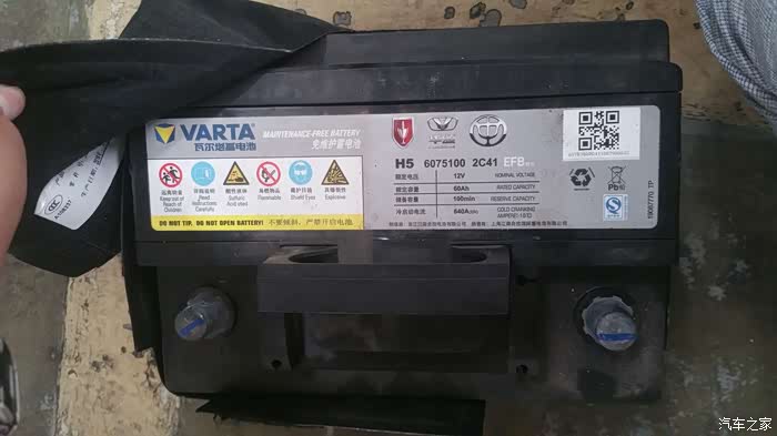 拆下的电瓶,瓦尔塔银标,不是专用启停电瓶(AMG),幸亏不是专用启停电瓶(AMG专用启停电瓶市场价至少在1500元),带启停功能的车辆,经常使用启停的情况下,专用电瓶AMG)一般2-3年的寿命