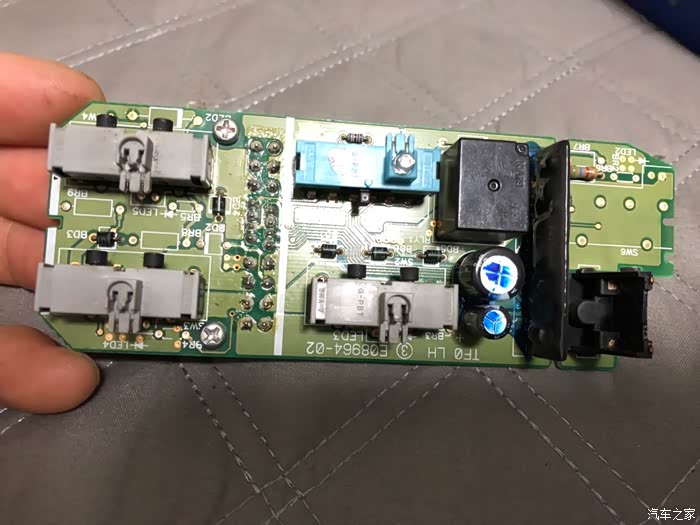 主驾开关只有主驾玻璃是带灯的,其余3个是黑色不透光的,其实他的底材料是自色透光,只是上了一层黑漆,刮掉就可以了。