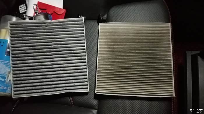 换下来的两滤,那黑黑的杂质可想有多脏,山好水好空气好的山区城市都这样子,可想雾霾严重的城市有多可怕