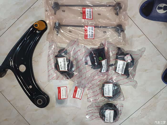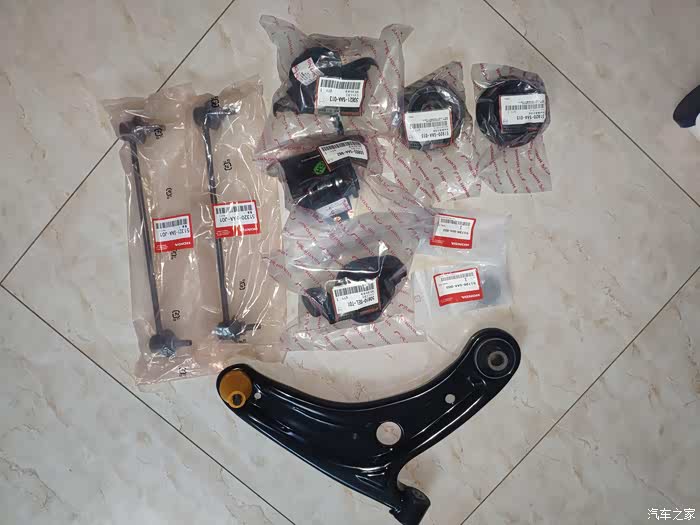下摆臂支臂总成,减震顶胶和平面轴承,老飞度发动机变速箱支架垫共三个,平衡杆。