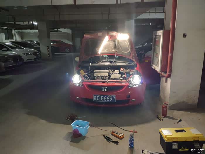 飞度高低配都不带透镜,只能自己打孔安装啦!