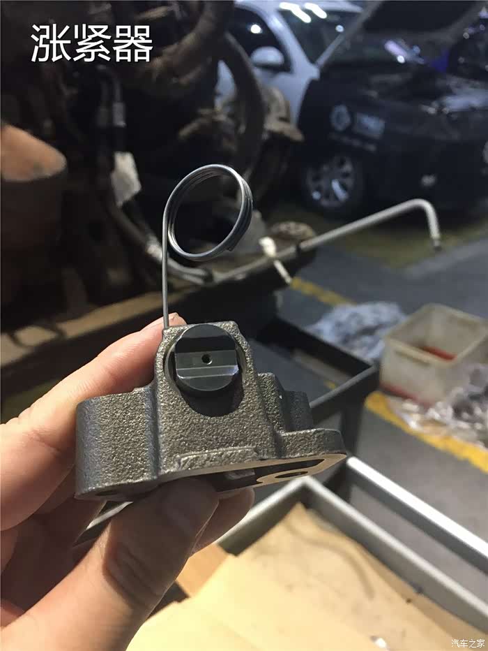 涨紧器,跟德系车型的一样,都是采用了油压进行弥补压力,这也是很好的解释了,为什么在发动机刚刚启动的时候,正时链条会哗哗的响,主要是因为油压在此刻建立不足,无法将涨紧器施加足够的压力,导致了链条过松,间隙过大,自然发动机就会异响了。