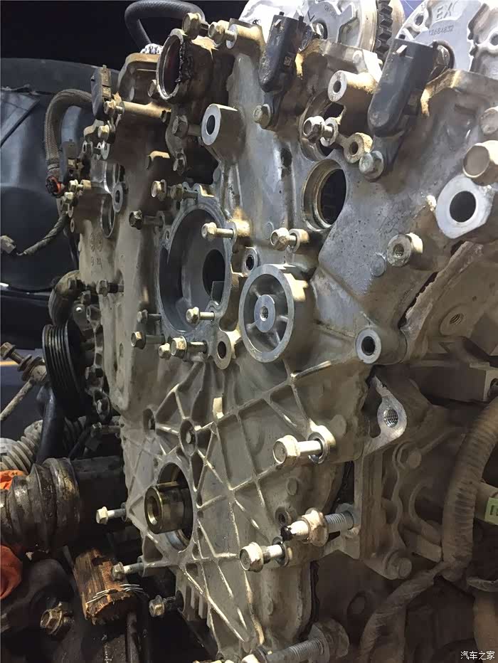 更换正时调节轮因为在车身上面,工作的空间实在是很有限,没办法只有将发动机总成整个拆卸下来进行更换了。主要的原因还是SRX的发动机采用了横置的布局,既要放得下发动机又要放得下变速箱,导致了空间进一步的被缩小了。如果要是采用了纵置的布局设计,施工强度就会下降很多,根本就不用将发动机拆卸下来了。