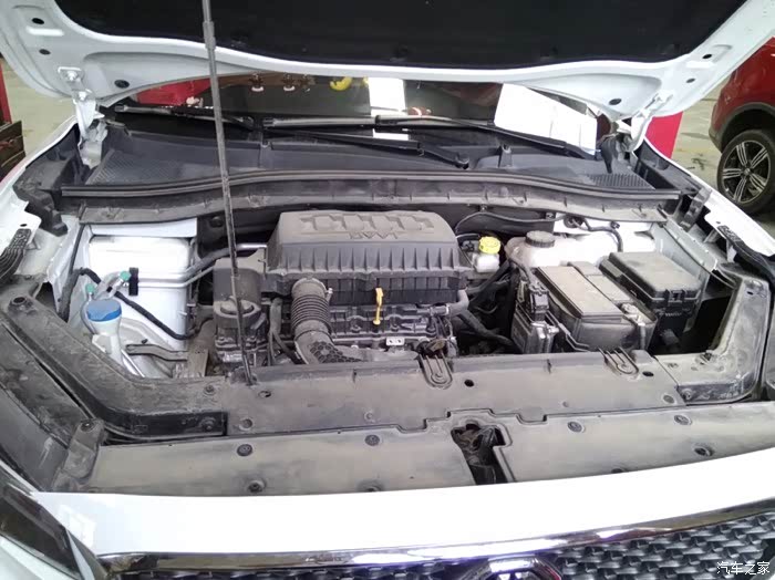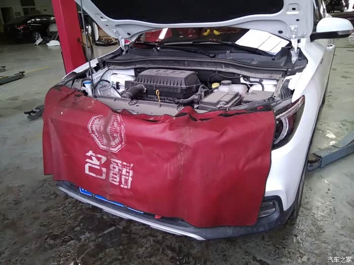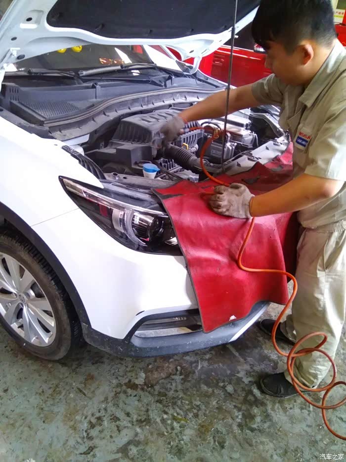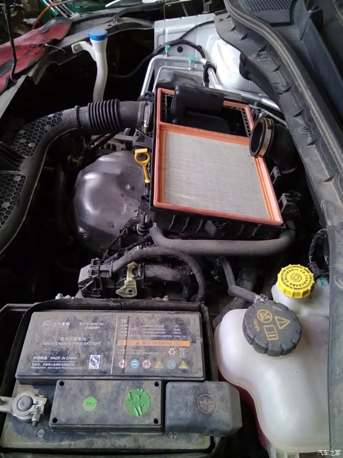 师傅打开了前舱盖,打开发动机前舱盖,哇,居然积了这么多灰。我太久都没有开过前舱盖了,看来我需要找个时间好好清洗一下大白了。不过同时也说明一个问题,就是兰州这边比较干,空气里灰尘多。师傅大致吹了一下灰尘,虽然干净了一些,但是还是需要以后清洗一下。