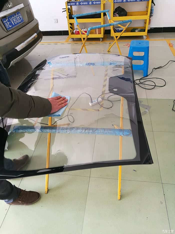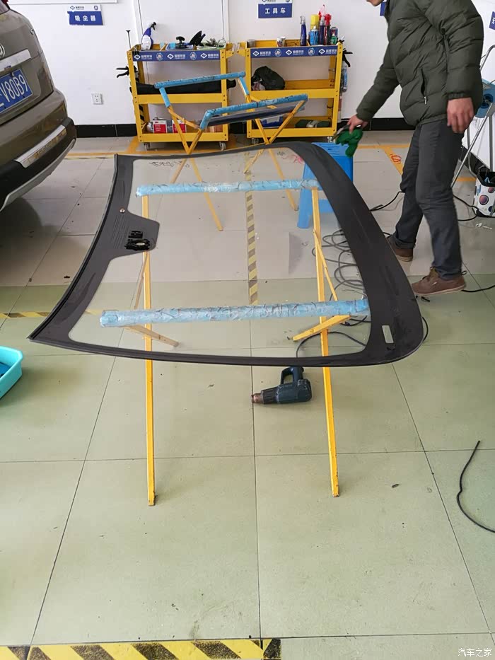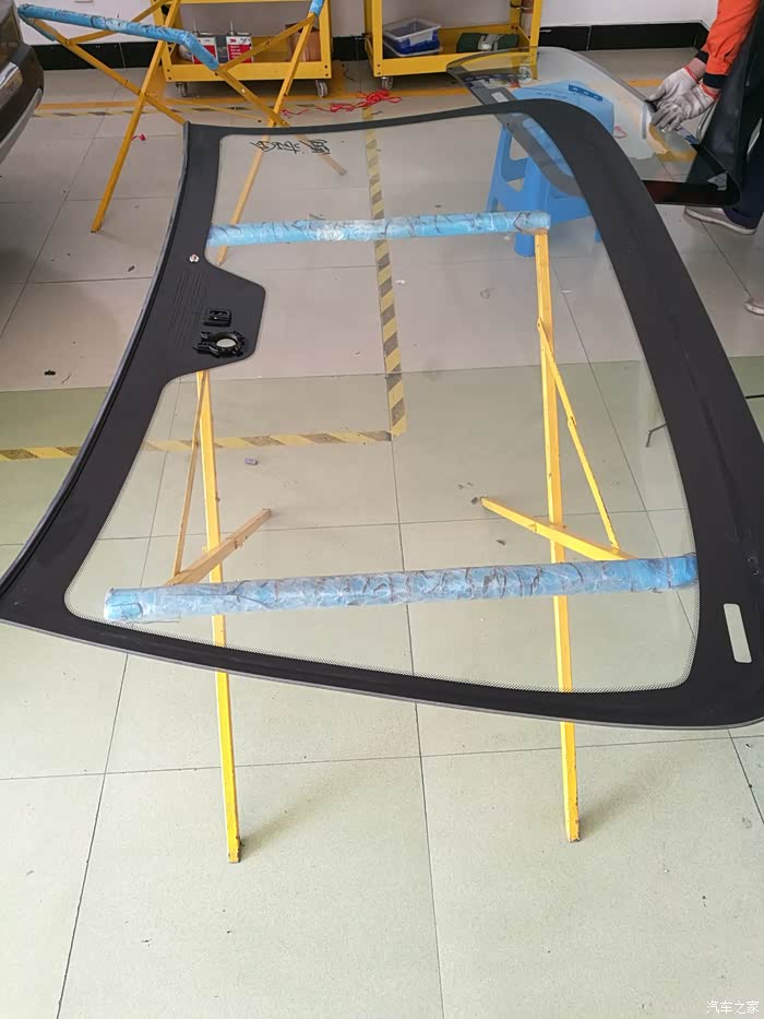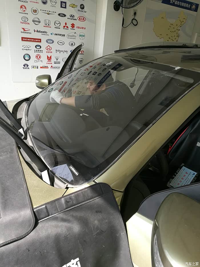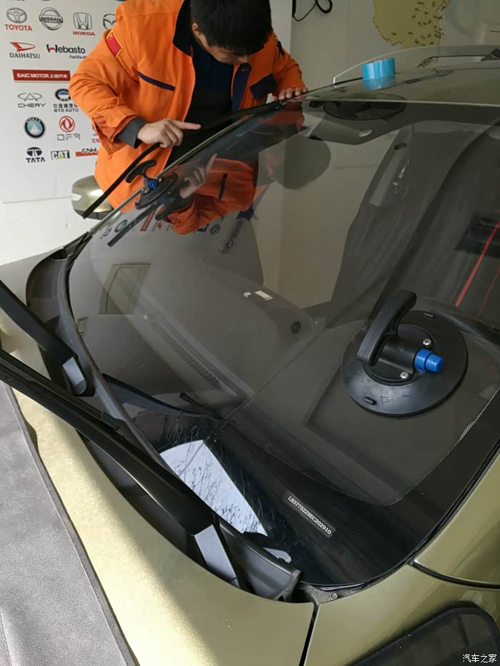 2月10日下班后,把车停小区地下车库,第二天早上发现,不知道什么原因,前挡玻璃裂了将近3cm裂纹,本来计划先开开以后再换,不料白天太阳暴晒,晚上温度低,温差十几℃,裂纹扩散了,差不多5.5cm。担心他继续开裂,先用胶带粘了一下,继续开了一周。今天电话咨询福耀玻璃店,一问有货,于是趁周末休息驱车赶到店里!
