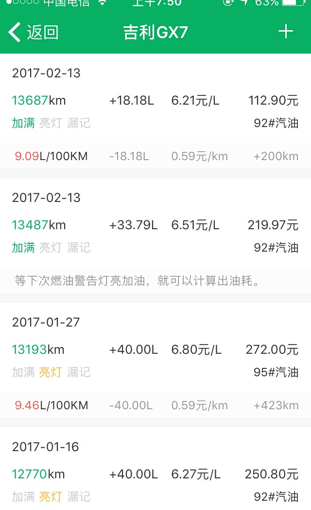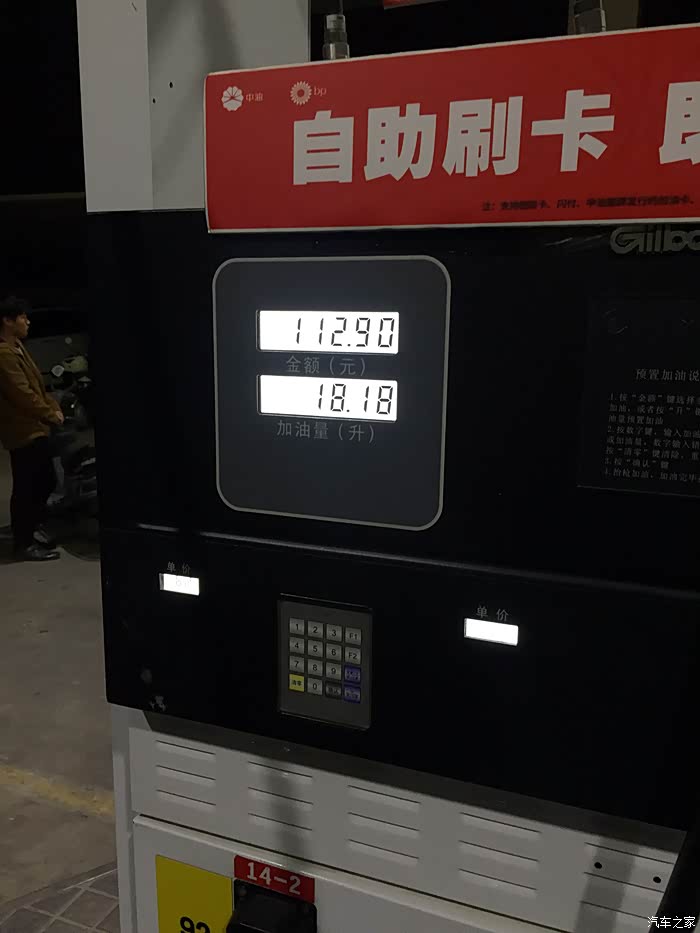 92的汽油一共加入18.18升。算下来油耗在9升多一点点的百公里油耗。