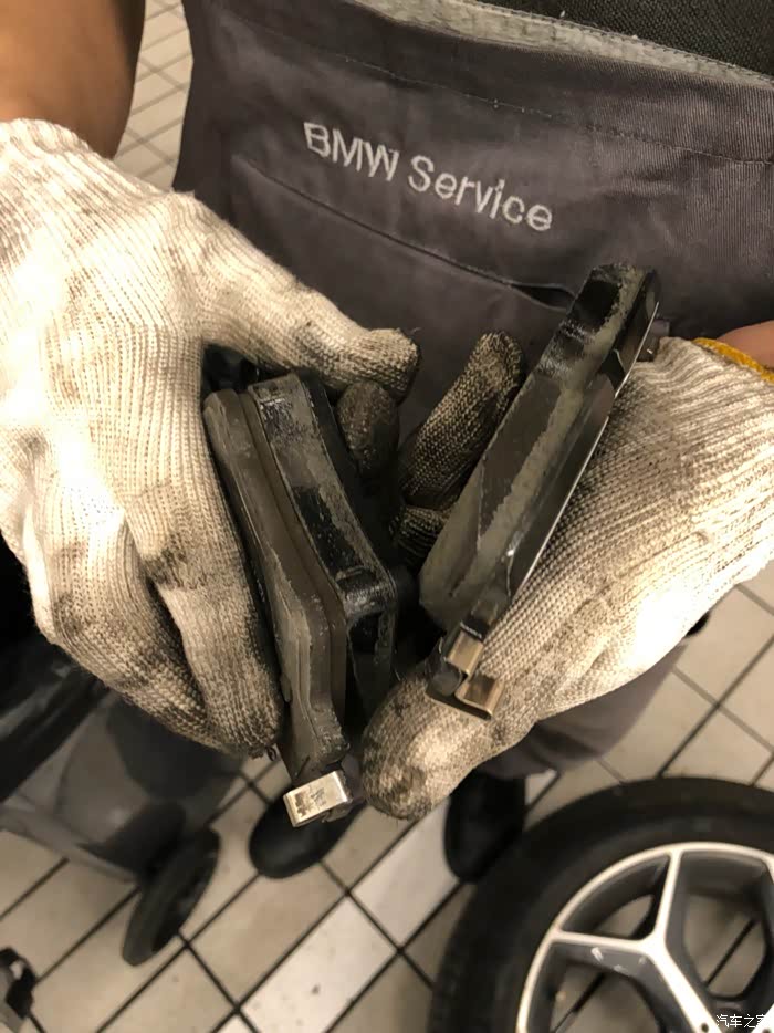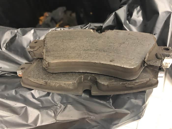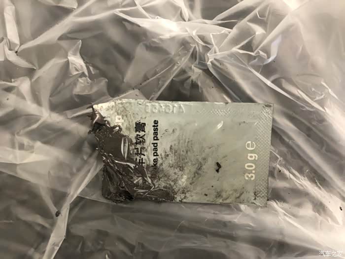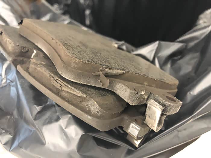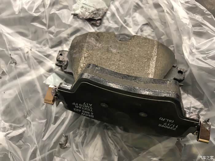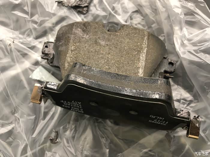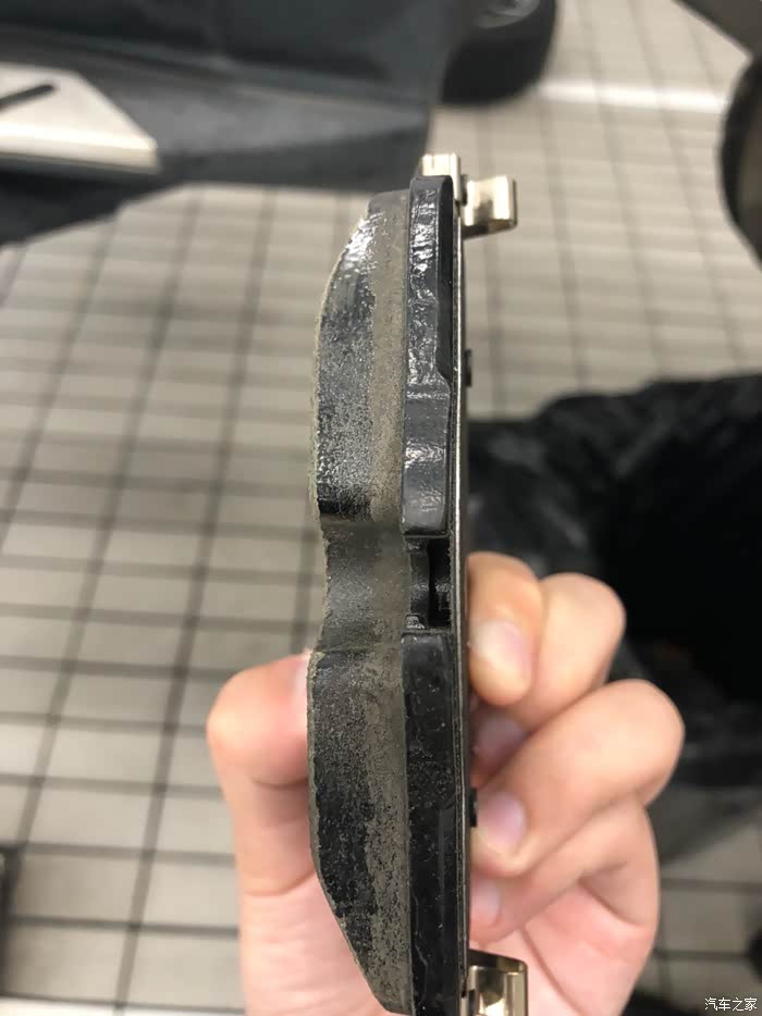 细节图,刹车片更换前,其实不是很看得出来磨了多少