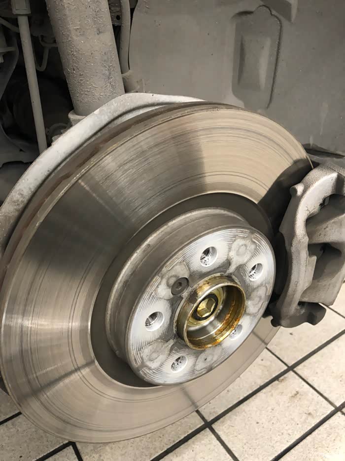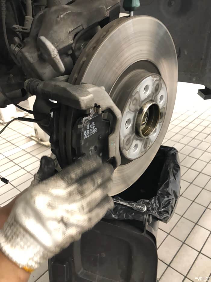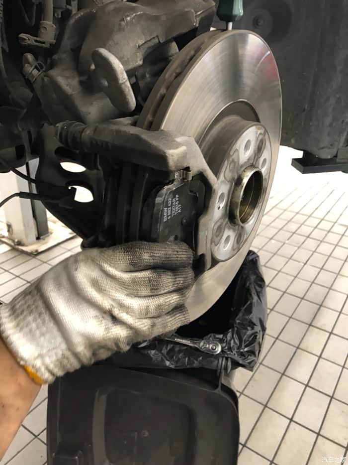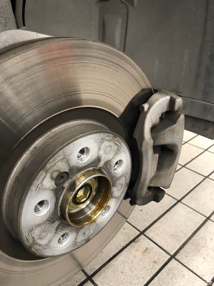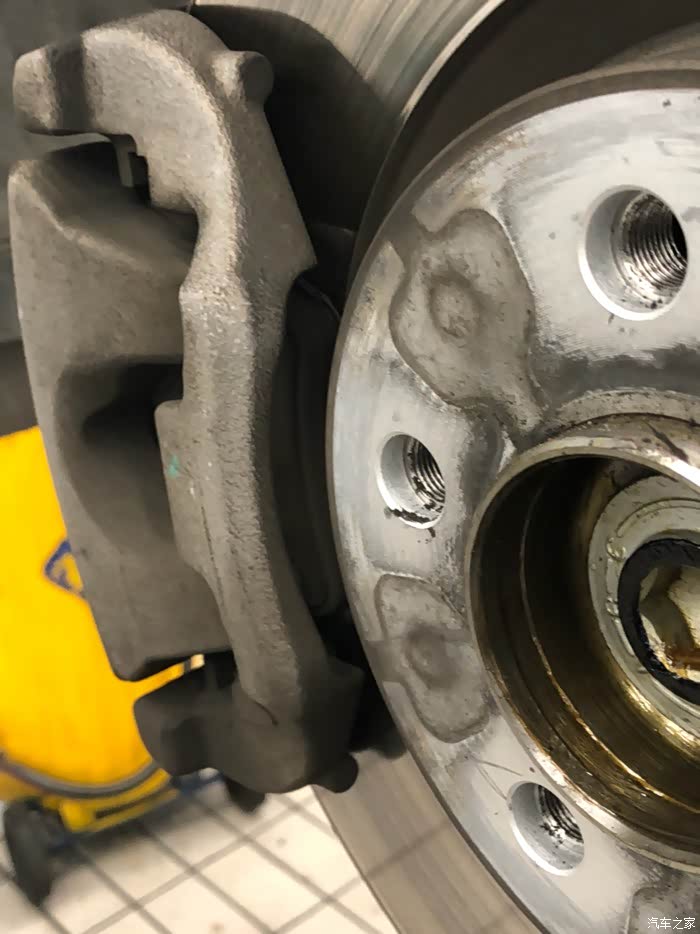 细节图,刹车片更换前,其实不是很看得出来磨了多少