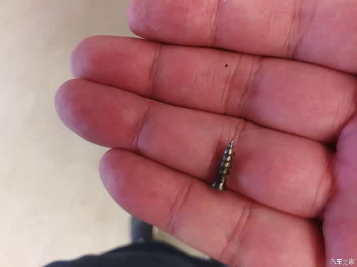 闲来无事检查了下轮胎,扎了这么颗钉子,好在没有扎穿