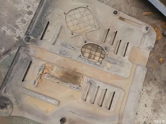 发动机护板也是伤痕累累啊,里面还有泥土和砖块
