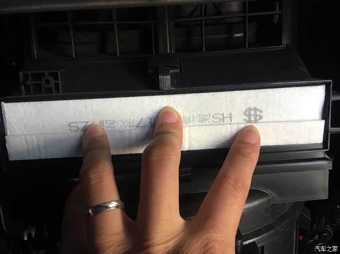 换上新的空调滤芯,记住要塞到底哦。要不然外面的盖子不好盖。