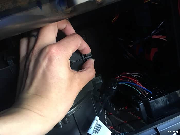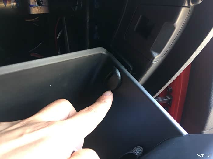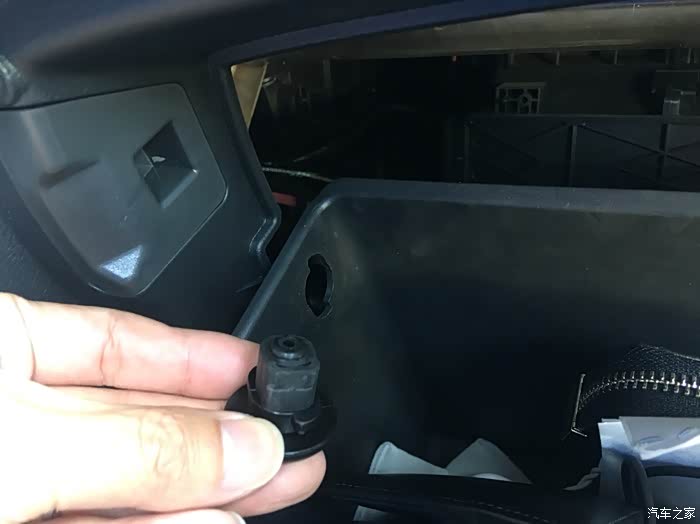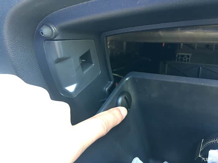 打开手套箱,两边有两个塑料卡扣,很好拆。