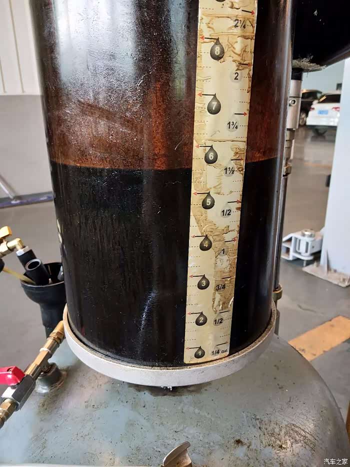 一会儿工夫,废机油已抽完,凑近瞧瞧,5.5升废机油。