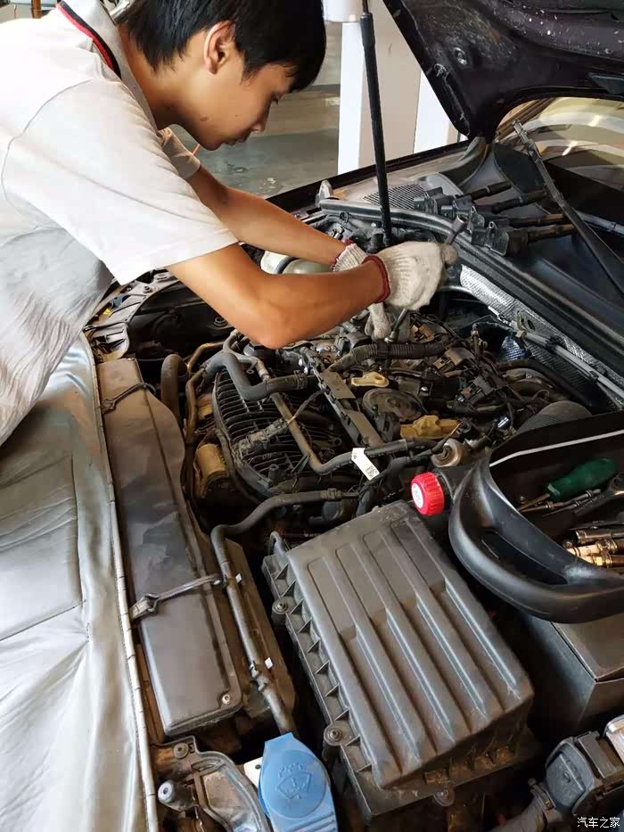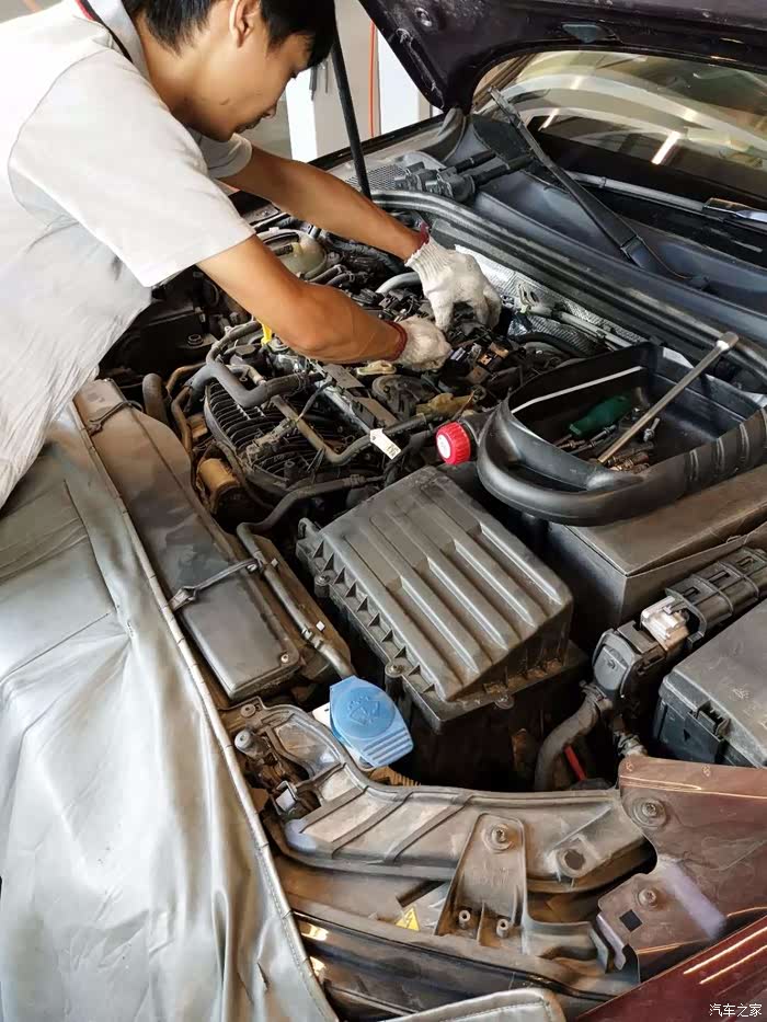 换完火花塞,小师傅又认真地检查一遍,有无异常。