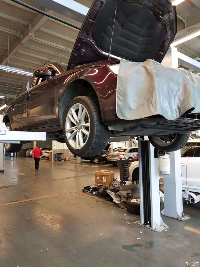 旁边的1.4T的A3也在保养,机滤是在下面的,要拆发动机护板才能换机滤。