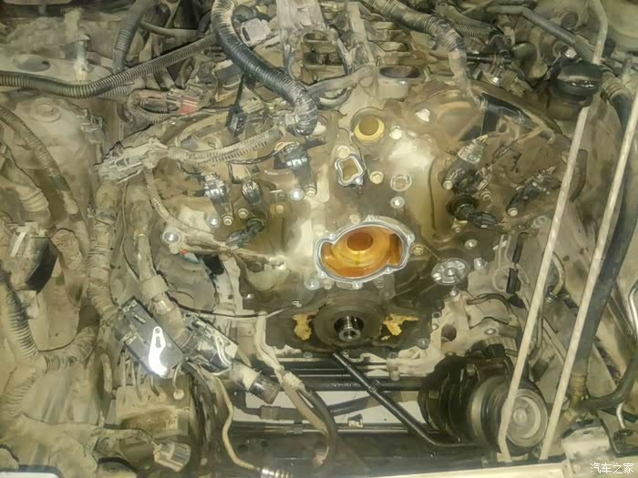 把发电机,压缩机,助力泵,水泵等附件拆下。