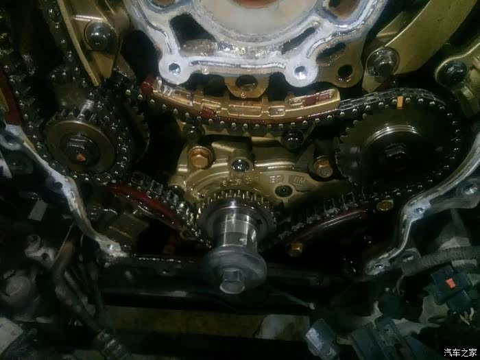 这个车子的正时安装分两个部分,先装曲轴链条再装两根凸轮轴链条。