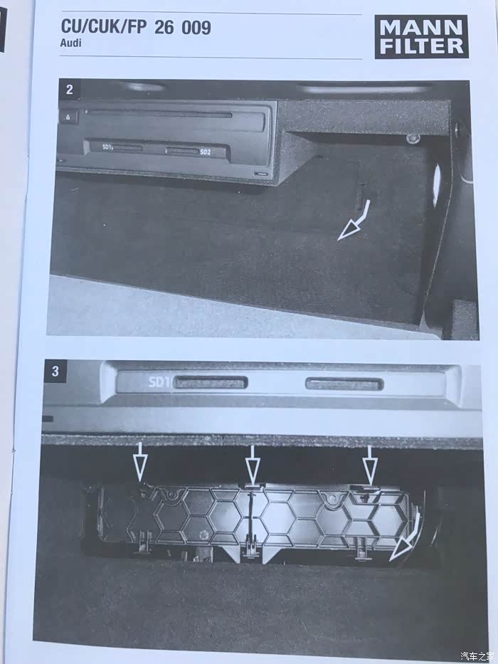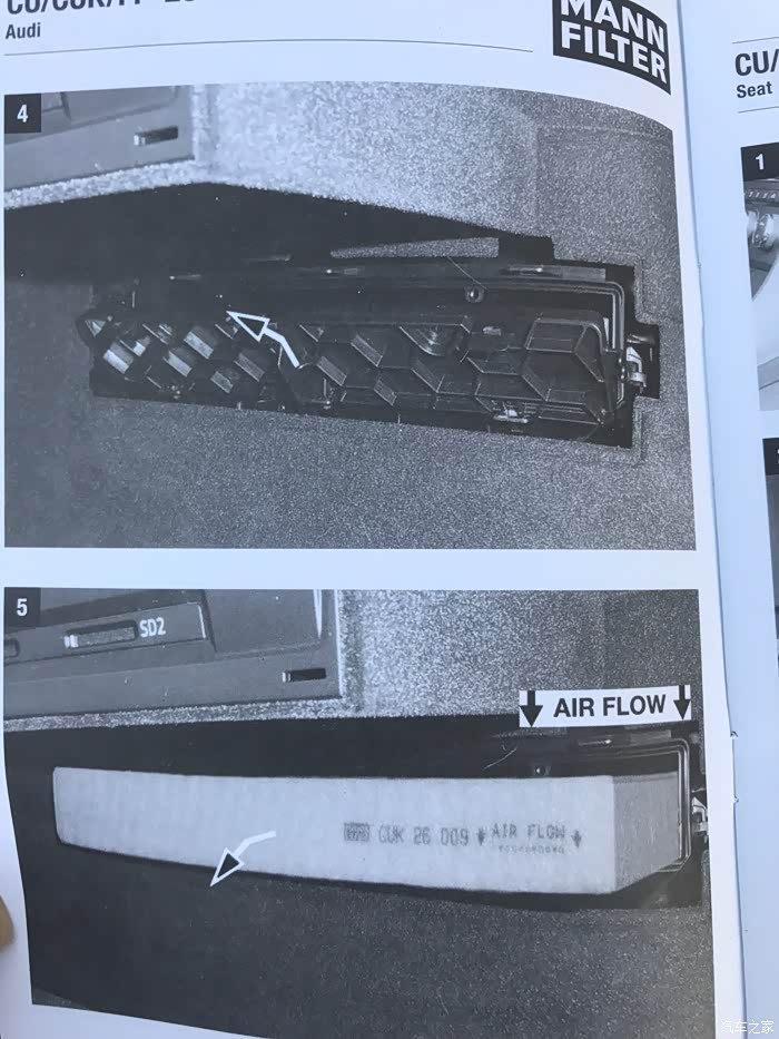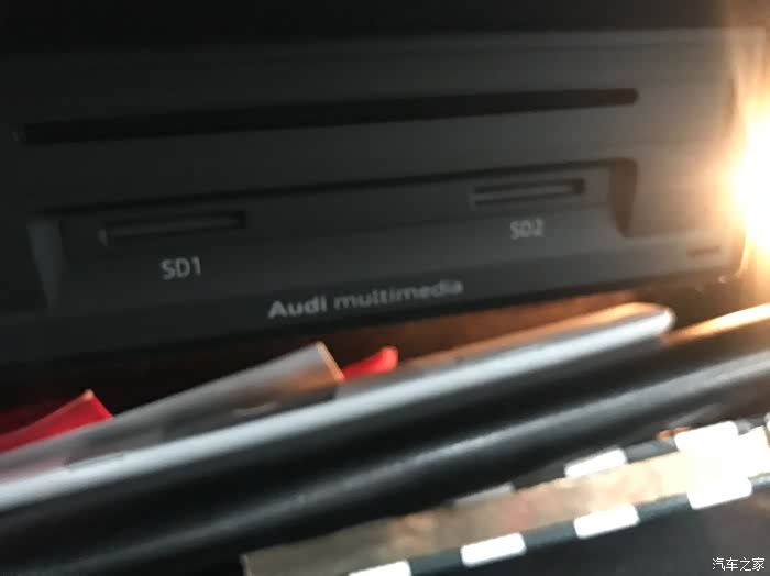 箭头所指朝下!推进去后,把盖板盖好即可!吐槽下奥迪的做工,全车都是LED的小灯,唯独这个储物灯,是卤素的!