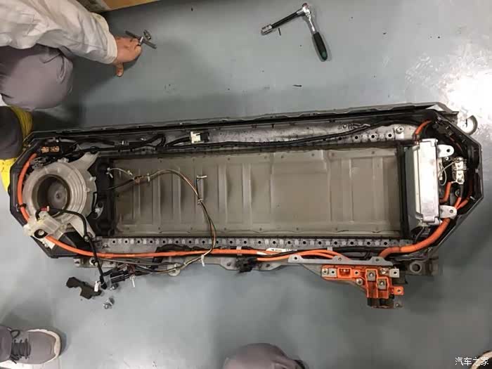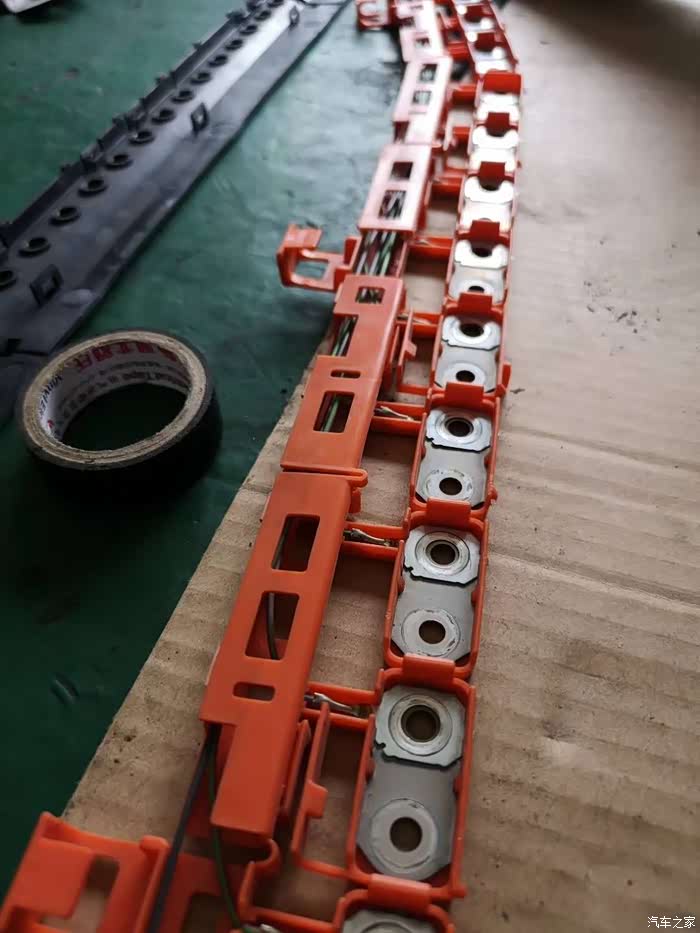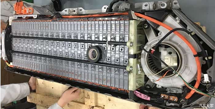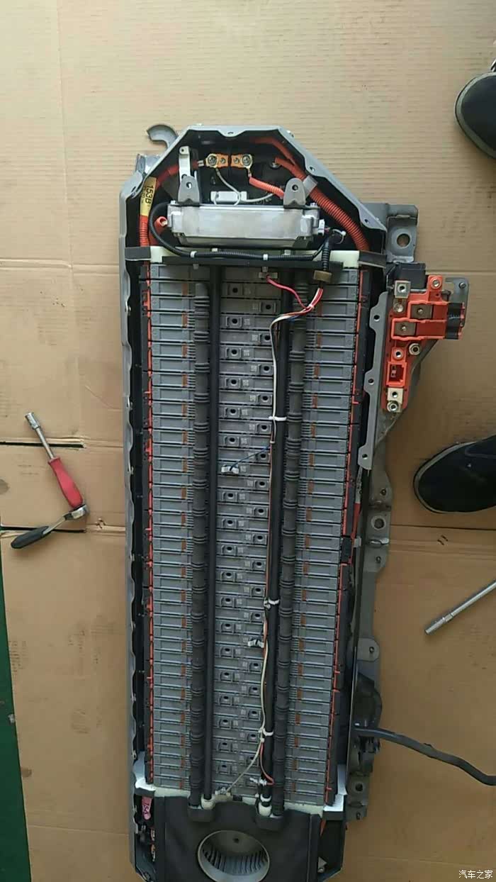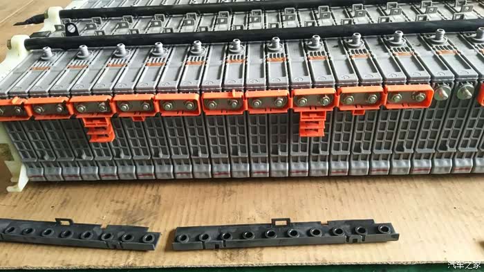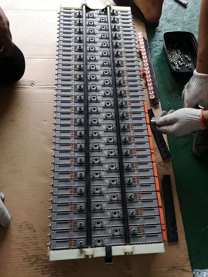 将上盖板拆除,就可以看到电池的样子,继续拆温度采集线束、拆掉靠继电器端的总正总负动力线拆掉、拆除风扇上盖板。
