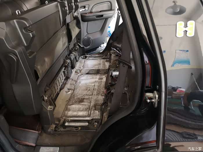 先断12v铅酸电池用绝缘胶带缠好、然后把后排座位折叠收起来、把后排地板掀开,将动力芯电池MSD保险拔掉第步工作完成