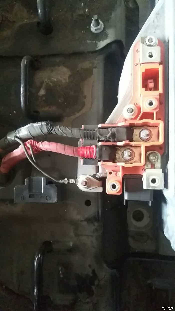 将动力线拆除,并用绝缘胶带进行缠绕做好防护措施、将电池包周围螺丝拆除,控制线束接插件拔掉、排气管拔掉,可直接将电池包抬下来、拔控制器接插件的时候要非常小心,不然容易导致线拉断!