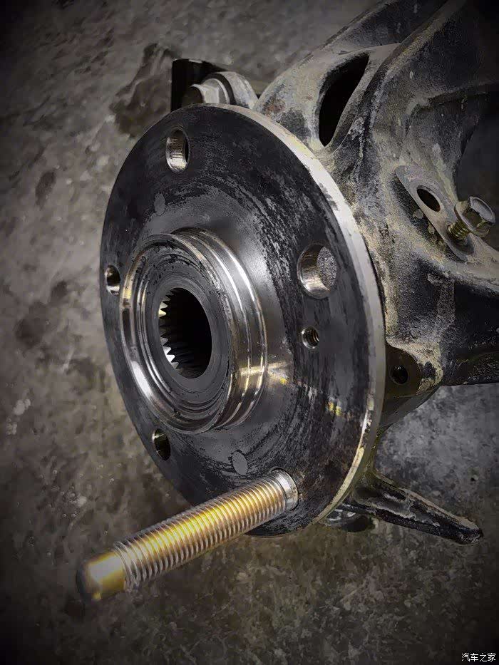 这张图片大家可以看到,刹车合头与原车轴头中间还是有一个缝隙。。。楼主找人车一个轴距垫刚好填平这个缝隙。