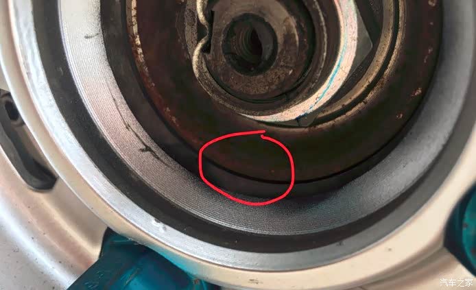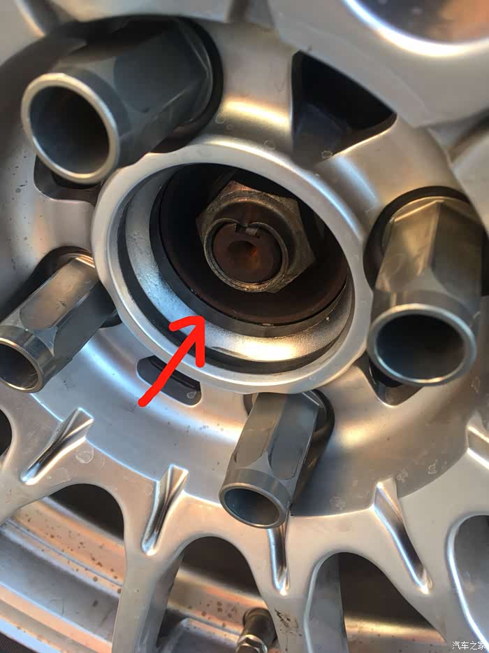 轴头跟轮毂中心是有间隙的,这种情况是比较危险的。因为力量全被轮毂四条螺丝承担。这个是9444卡钳