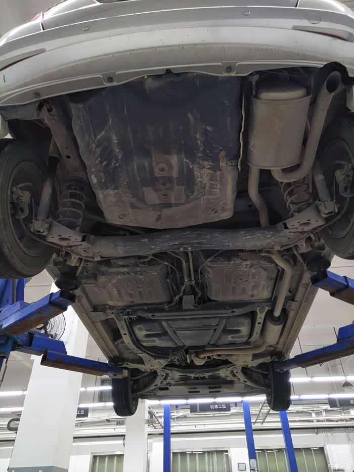 从后往前拍底盘,还是有点脏,最近洗车不勤快,平时都是自己洗的,会特别去冲洗底盘...