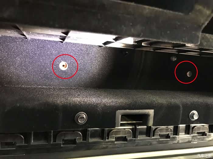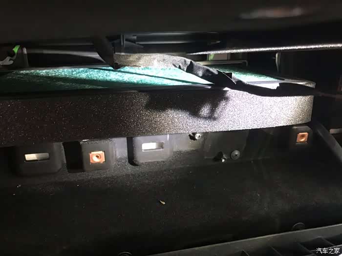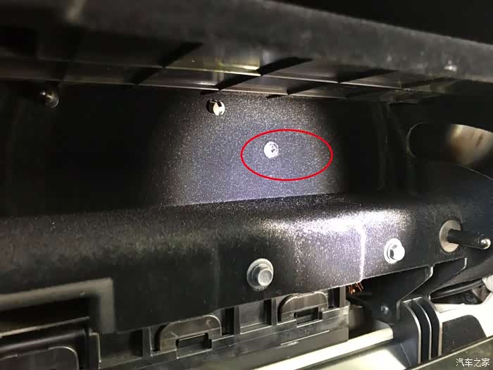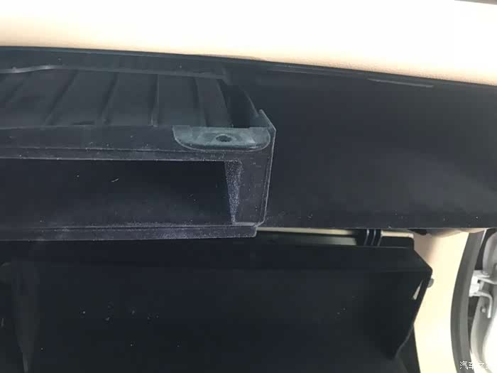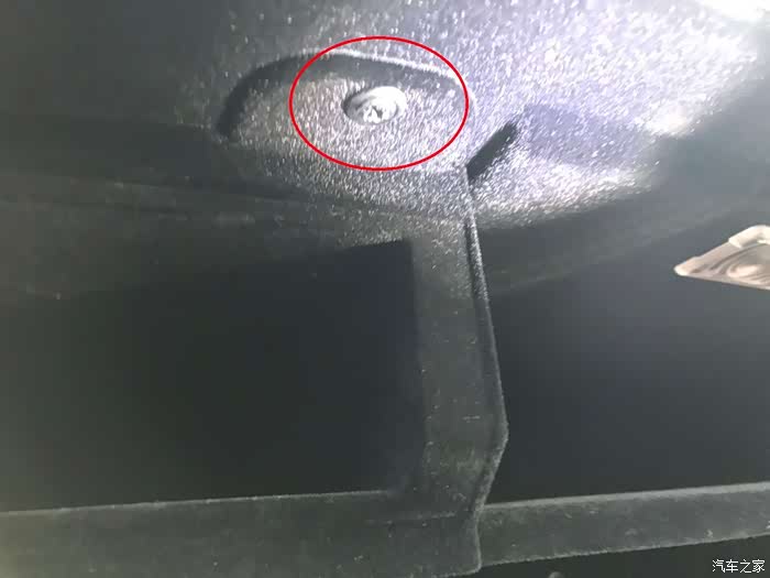 副手箱的隔层有三颗螺丝,上一颗,底两颗。图中是上面的一颗,用把十字螺丝刀,轻易拆下。