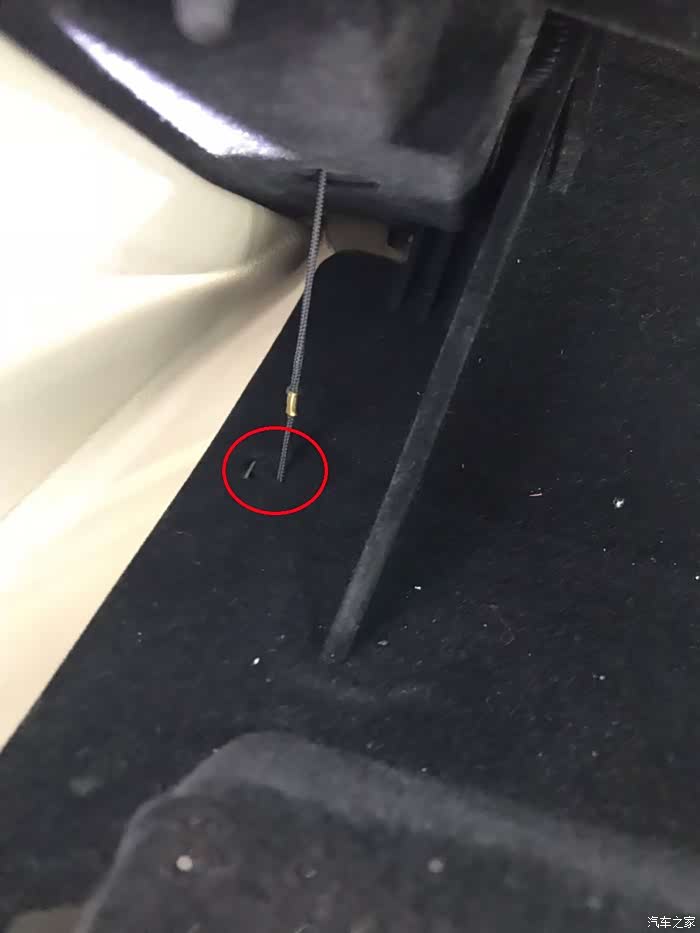 这车的挂绳脱钩后,弹回,但还会露出这个挂圈,有些车是弹到里面去,在拆时,还要拿工具预挂着,防止全部缩入车内。