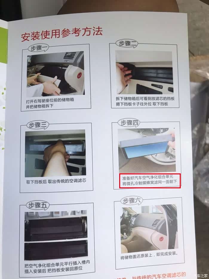 说明书上有通用的更换教程,但是,细节确没有很好说明。但要注意装微冷触媒蜂窝滤网一面朝下。
