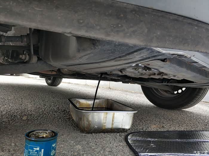 13年6月的二飞,到18年6月共跑了79000公里,在四万公里时用重力方式更换了三遍变速箱油。其实按照维修手册要求,每四万公里用重力更换一次变速箱油大约三升就足够了。上一锅绿桶机油行驶了6200公里,所以本次保养,就更换机油和自动变速箱油。约好朋友之后,找个空地开干。
