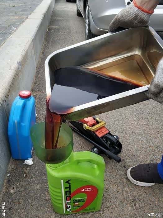 放出来的变速箱油,还能看出来红色本色,本田变速箱油更换设计还是很方便的