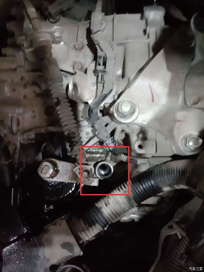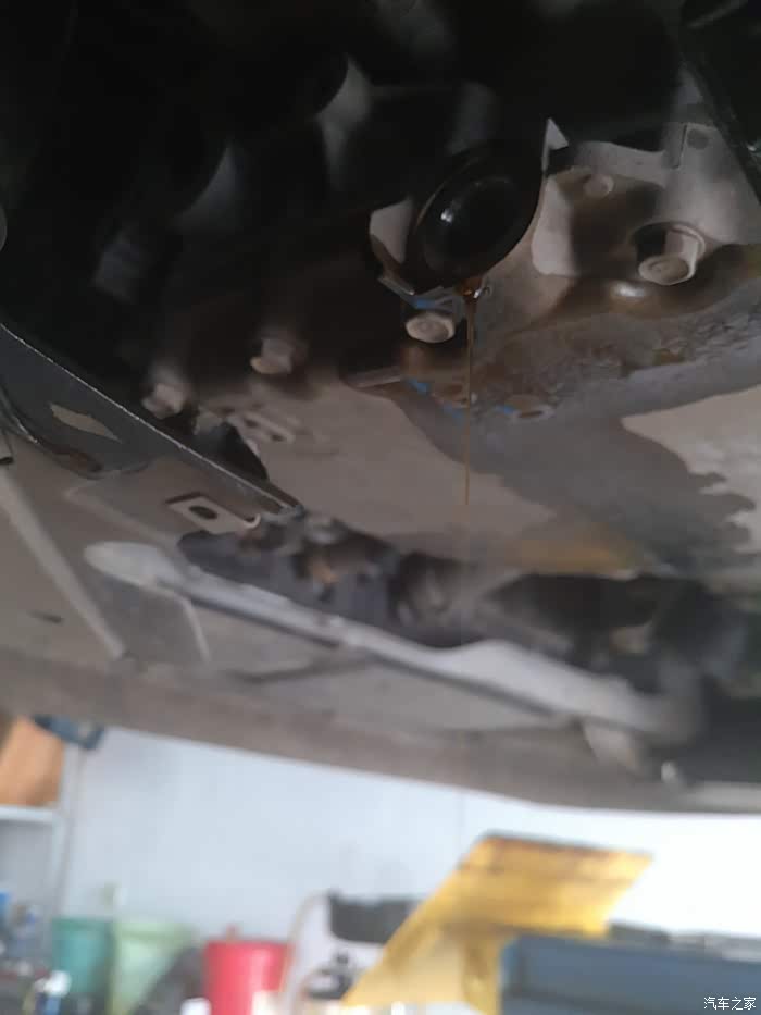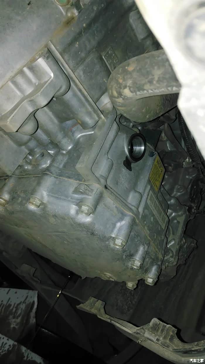 将车发动,踩住刹车,每个档位来回挂一下,再看看放油口有没有漏油,没有的话就大功告成了,在将护板装回,就完成了。之前我说过有两个变速箱油加注口,一个在空滤下面,另外一个在这里,这里本来是一个观察口,用来看油是否加多,加多之后就会从里面留出来。有的4S店是在这个观察口加注新油,但我还是比较喜欢在上面加。