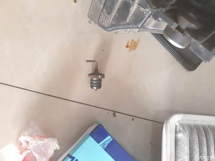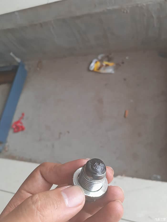 上图为放油螺丝,带磁性,周围吸附了一堆铁沫,清理干净,待会好装上。
