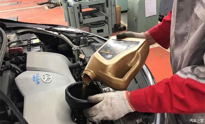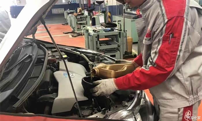 工作人员小心翼翼的把机油一点点的倒进去。。。