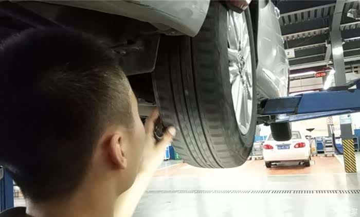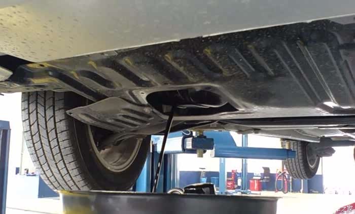 当然在放机油的同时4S店的工作人员也没闲着,仔细的检查了底盘的情况看看有没有漏油或者螺丝松动的情况~