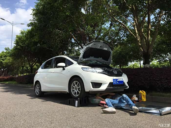 朋友自带了曼牌机滤和鹏斯0w20机油过来,由于已经开了一段路程过来,发动机是热身状态(热身状态下,油泥才会冲刷起来,冷车情况下油泥在油底壳不会随着旧油流不出来的),所以开上坡道,打开发动机舱,松开机油盖,就开始放油。油底壳螺丝是17mm的,使用对应的套筒扳手,垫片看上去完好就不准备换了。反正时间很多,我们就等机油一滴一滴的时候再重新上回油底壳螺丝,机滤和油底壳螺丝挨着很近,所以可以同时拆下机滤,滴下的机油都能流到盆里,不会滴在地上。本田原厂的机滤使用14边65mm的尺寸的机滤扳手刚刚合适,型号是901,有需要购买的给你们参考。而这次换上去的曼牌机滤是14边66mm规格,反正安装机滤也是用手上3/4圈,就不需要对应的机滤扳手了。