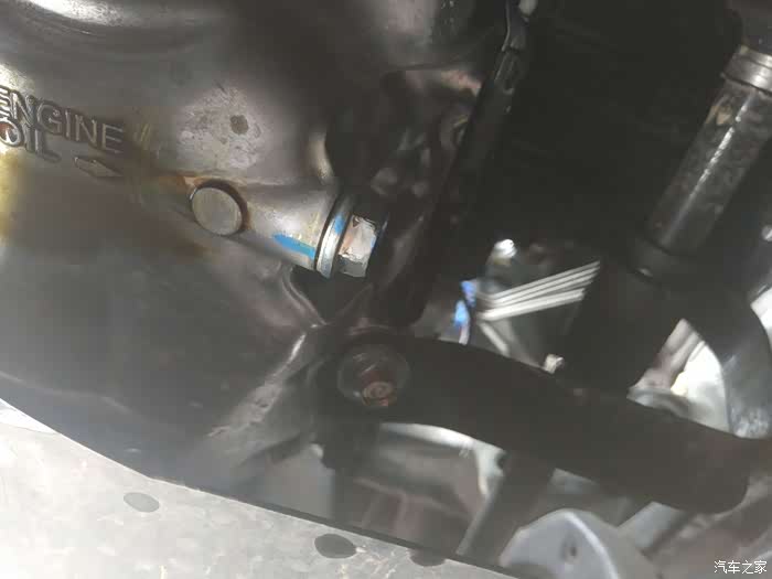 安装好的油底壳螺丝,比原来的划线多拧了一点点