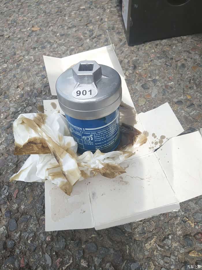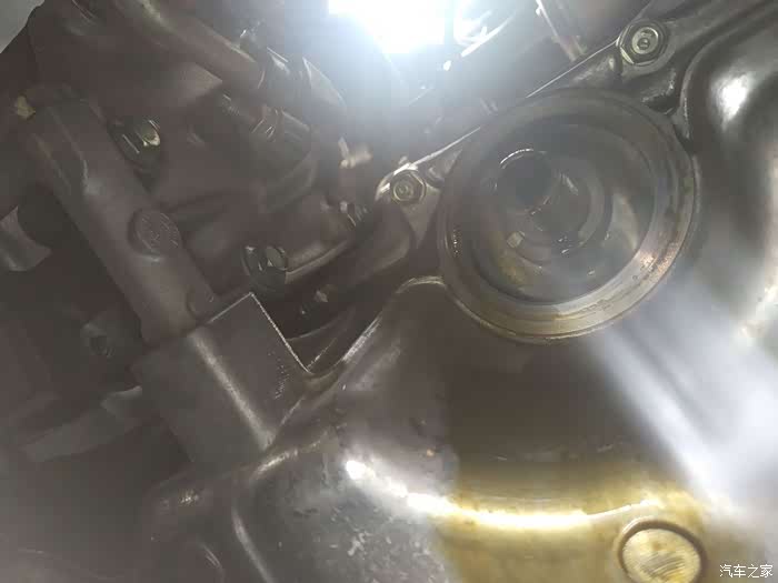 今天天气很好,这是拆了机滤之后的底座,用纸擦拭下周围的油泥