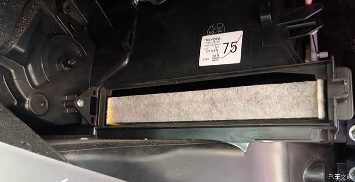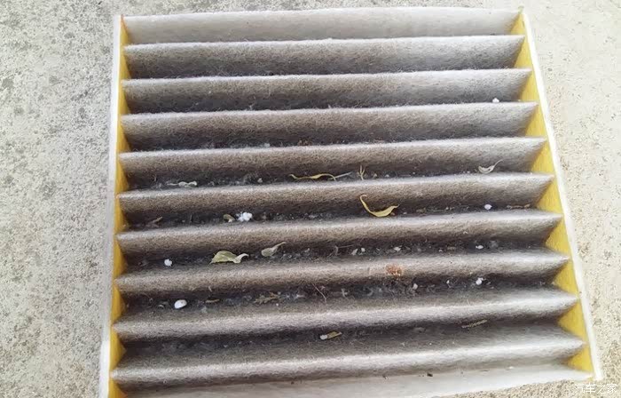 小心轻轻的抽出空调滤芯,不要让杂物掉下去
