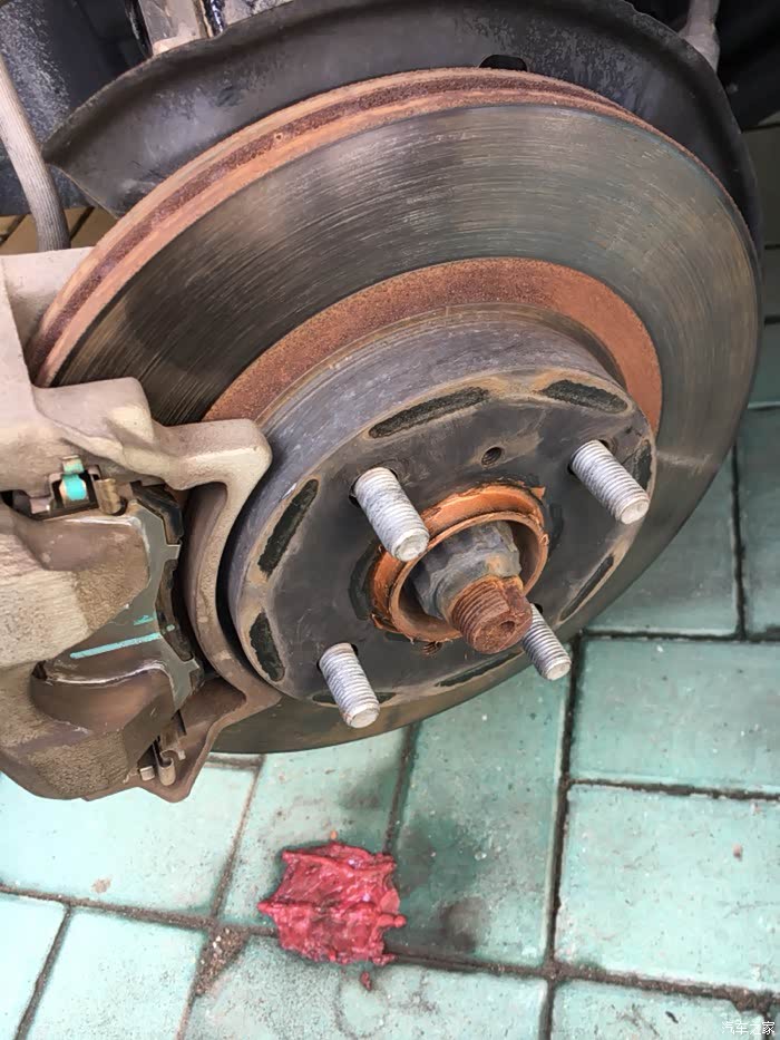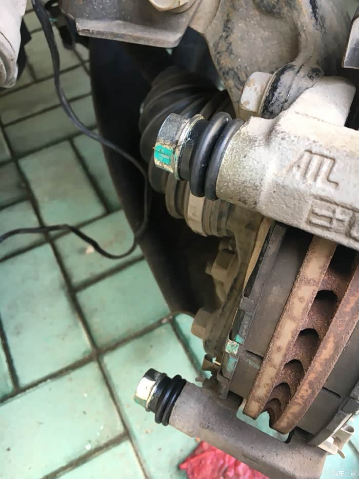 刹车片卡簧是用清洗剂配合刷子清洗干净,装回。摸菲罗多灭音润滑油,刹车片与卡钳接触面同样抹上灭音润滑油。轮毂中间孔接触面抹防咬合润滑油,(也可用黄油代替)