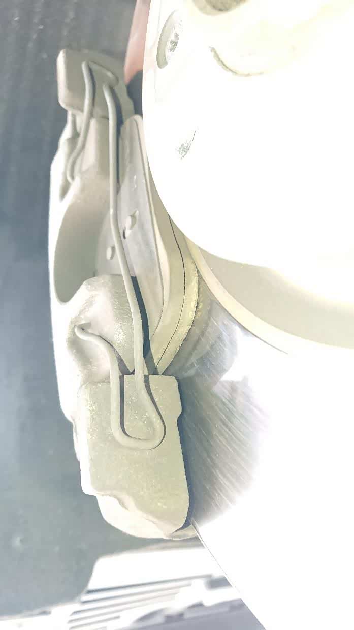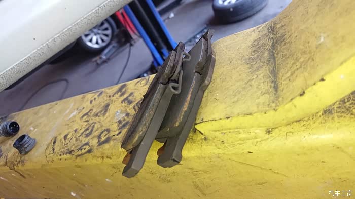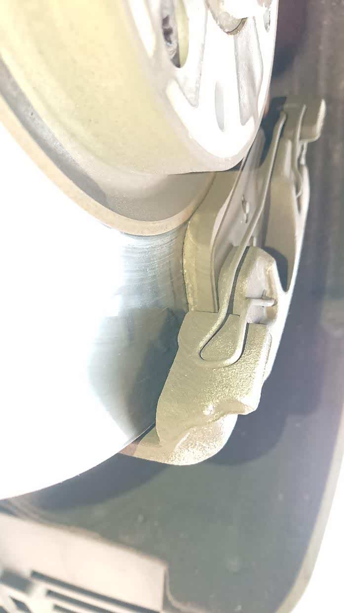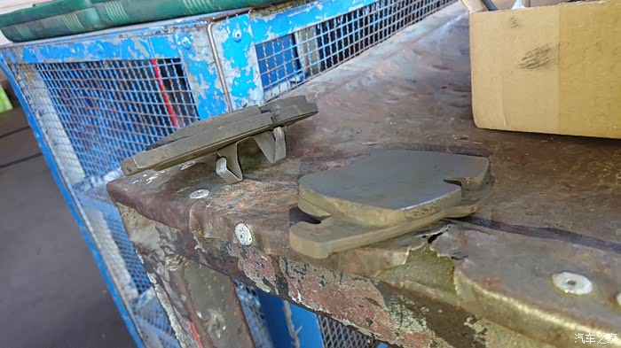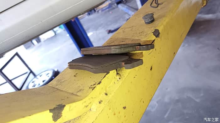 这是左后轮刹车盘左后轮刹车片已经极限薄了,必须得换