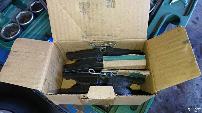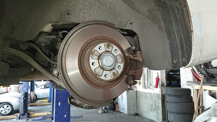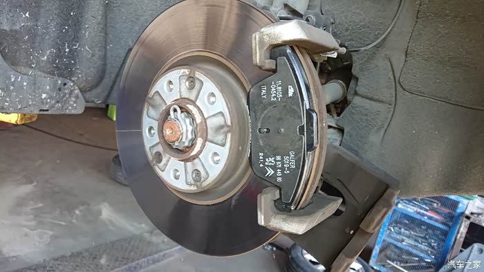 接下来就是换前后轮刹车片了(基本上两个前轮刹车片都比两个后轮刹车片厚,508最吃后刹),这是左前轮刹车盘