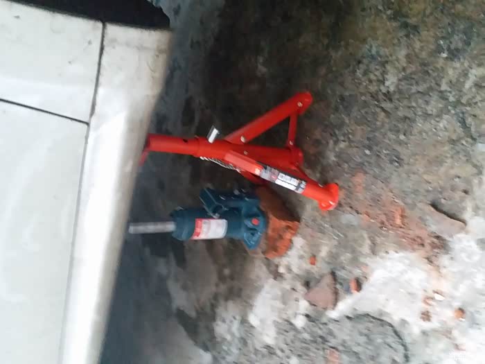 小液压千斤顶,十多块钱。比原车自带手摇式好用太多,但是起顶高度太高,还要和原车的手摇式配合使用。另外要用支架,单用千斤顶不安全。